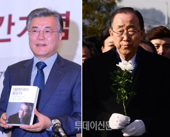 | ▲ 문재인 더불어민주당 전 대표-반기문 전 유엔 사무총장 ⓒ뉴시스 | ||