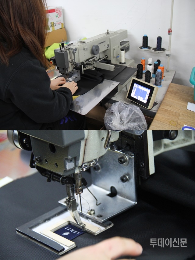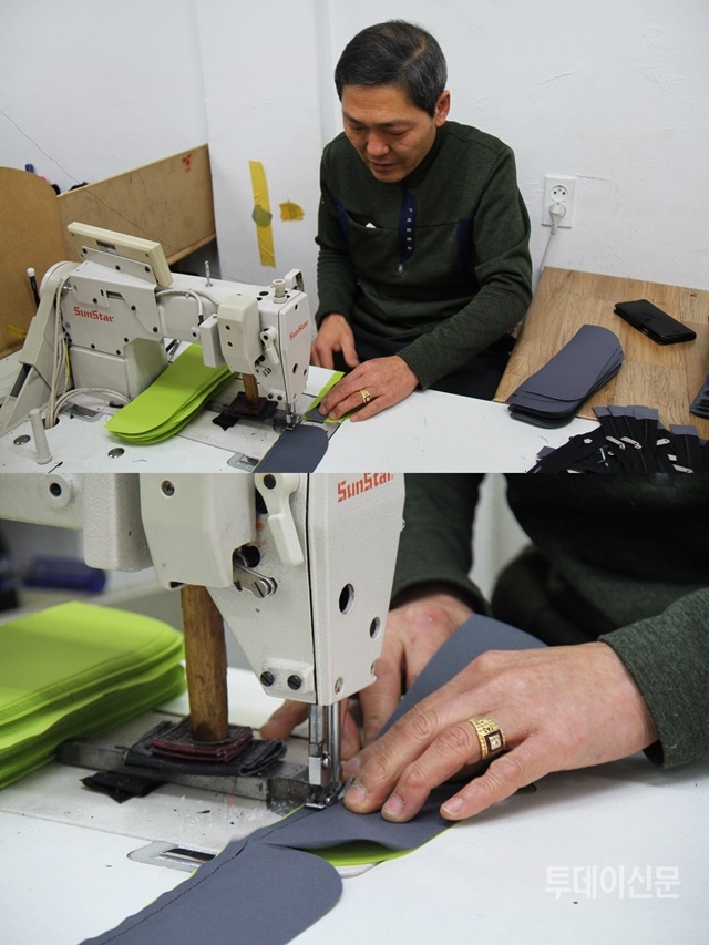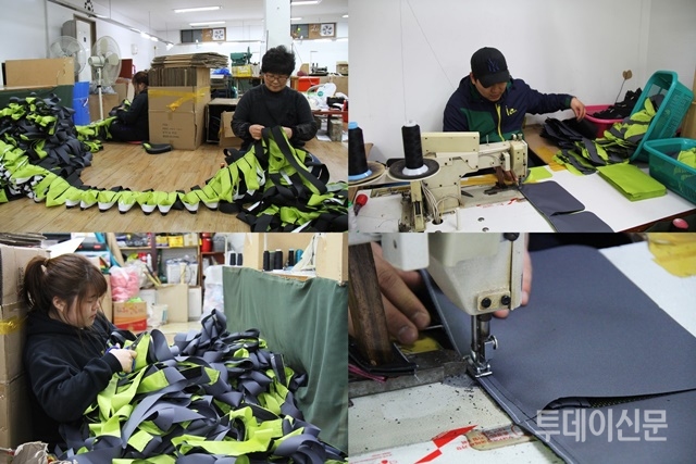 이번엔 다른 본공장으로 향했다. ‘익산개발연구소’다. 승민산업과 비슷한 규모의 이 공장에서는 7명이 작업에 열중하고 있었다. 누구도 이야기하고 있지 않았지만, 어디선가 흘러나오는 라디오 소리와 재봉틀 소리가 어우러져 다소 시끌벅적했다.