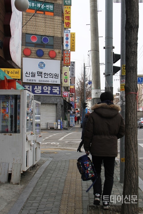 | ▲ 비닐을 사러 가기 위해 신월동을 걷고 있는 장영일 과장. ⓒ투데이신문 | ||