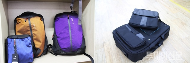 | ▲ 왼쪽부터 조합 자체브랜드 란트, 청년 브랜드 JO가 만든 가방들 ⓒ투데이신문 | ||
