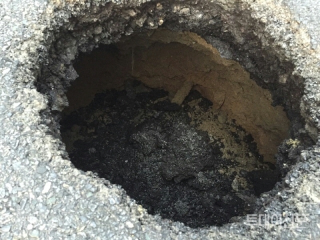 【투데이신문 남정호 기자】 지난 1일 오후 5시 30분경 경기도 고양시 일산서구 대화로의 한 4차선 도로에 가로 15㎝, 세로 15㎝가량의 싱크홀이 발생했다.