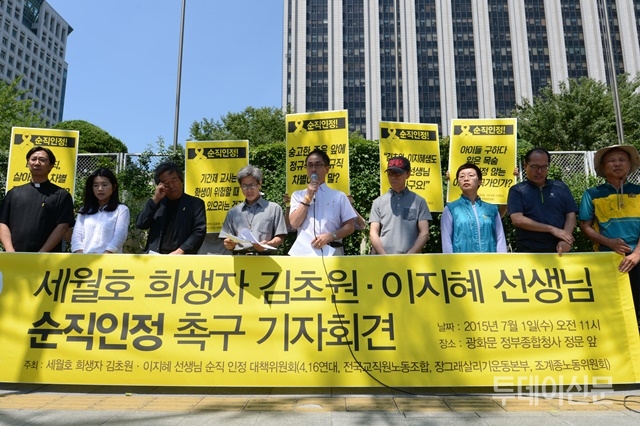 또한 “두 선생님의 아버님은 포기하지 않고 순직 인정 요구를 해왔다”며 “참사 이후 날마다 통곡해왔던 두 아버님께 작은 위로라도 드릴 수 있기에 이번 순직 인정을 두 손 들어 환영한다”고 전했다.