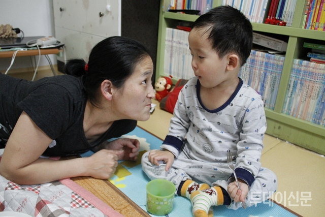 기차를 타고 달려 오전 10시가 넘은 무렵에야 도착한 전남 전주시 덕진구 선전동의 어느 빌라. 사슴처럼 큰 눈망울이 예쁜 아내 윤주(35)씨와 하회탈 같은 눈웃음이 인상적인 남편 규정(39)씨는 멀리서 온 기자를 반갑게 맞아줬다. 윤주씨가 안내해준 방안으로 들어서자 찹쌀떡처럼 뽀얀 볼살이 오동통하게 오른 세 살배기 하늘이가 세상모르고 깊은 잠에 빠져 있었다.