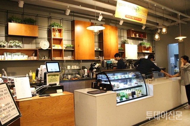 한편에는 혼자 책을 읽으면서 입이 심심하거나 삼삼오오 모여 수다를 떨고 싶은 사람들이 이용할 수 있는 ‘더숲카페’도 갖추어져 있습니다. 얼마 전까지는 피자, 파니니, 수프와 같은 브런치 메뉴와 커피, 차, 주스와 같은 음료를 팔았으나 새로운 메뉴를 개발해 카페 메뉴를 전체적으로 바꿀 예정이기에 지금은 브런치 메뉴는 이용할 수 없다고 합니다.