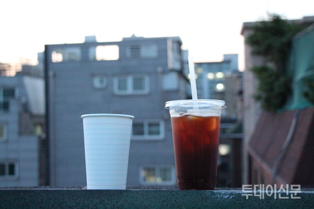 커피를 몇 모금 넘기고서야 비로소 맑아진 눈으로 카페에 앉아 있는 다른 사람들을 한 번 바라본다. 그들도 기자처럼 커피에 영혼을 맡긴 듯 무언의 의식처럼 음료를 마시고 있다. 자세히 살펴보니 대다수가 종이컵이나 투명한 플라스틱 컵을 사용하고 있다.
