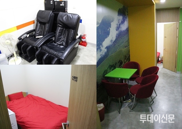 야간근무자들은 2시간의 휴식시간을 갖는다. 오전 2시가 되자 신 중계사가 먼저 휴식시간을 가졌다. 손말이음센터에는 하루 종일 앉아서 근무하는 중계사들의 지친 몸을 쉬게 해주는 수면실과 2대의 안마의자가 있다. 휴식시간에 주로 무엇을 하는지 물으니 신 중계사는 “주로 잠을 자요. 아무리 밤 시간에 일하는 게 익숙하다고 해도 쉬는 게 필요하더라고요”라고 말했다.