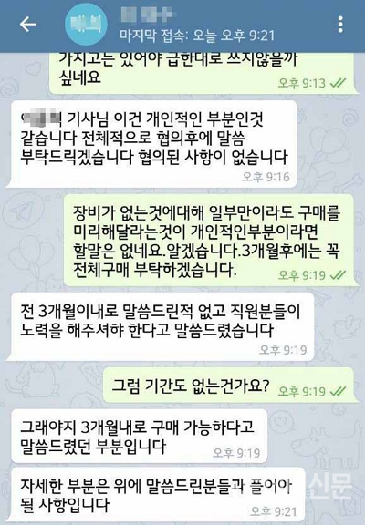해당 업체는 개통·AS 현장직 노동자들에게 “안전장비를 3개월 후 지급하겠다”고 공지했다. 이에 노동조합이 반발하고 나섰지만 경영사정이 어렵다는 이유로 업체 측은 안전장비 지급을 미뤘다. 게다가 “직원들이 노력해야 3개월 내로 안전장비 구매가 가능하다”며 업무성과를 조건으로 제시하기도 했다.