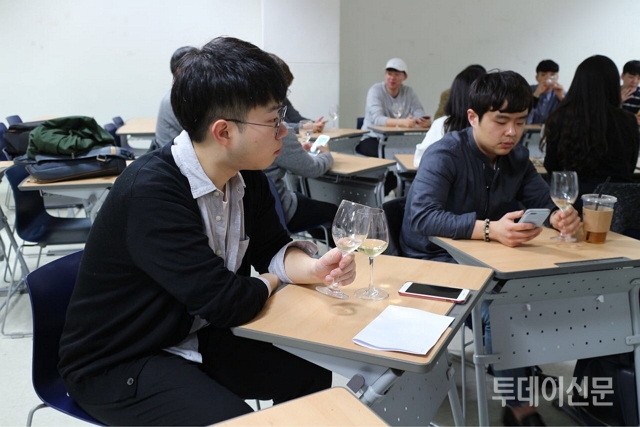 “테이스팅을 통해 한 학기에 보통 1만2000원에서 3만원 선의 14~15 종류의 와인을 맛볼 수 있어요. 모든 사람이 비싼 와인을 맛있다고 평가하진 않아요. 누군가에게는 1만2000원짜리가 더 맛있고 좋은 와인일 수 있어요. 반대로 비싼 와인이지만 입맛에 맞지 않을 수 있고요. 내 입맛에 맞는 와인을 찾을 수 있다는 게 테이스팅이 가지는 큰 장점이라고 생각해요”