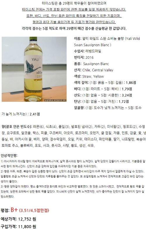 SRC의 테이스팅 노트를 단순히 동아리 활동 기록 정도의 수준으로 평가한다면 큰 오산이다. SRC는 지난해 와인 소믈리에 자격증 시험에 응시했다. 와인에 대한 정보가 필요하다면 SRC의 테이스팅 노트가 많은 도움이 될 듯하다.