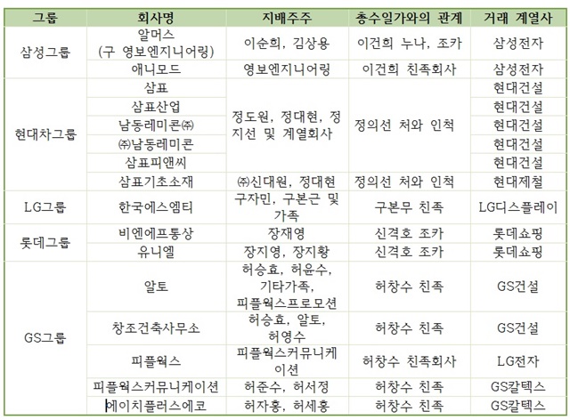 겉으론 ‘남남’ 친족기업 거래 규제 사실상 전무, 친족분리 및 거래 규제 강화 요구