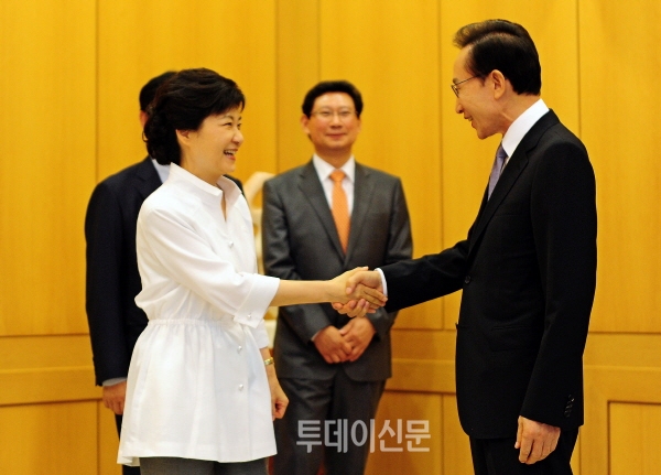 이에 정치권에서는 지난 2012년 9월 2일 이명박 전 대통령과 박근혜 전 대통령의 청와대 회동을 주목하고 있다. 이날 100분간 독대를 했다. 이명박 전 대통령과 박근혜 전 대통령이 2007년 대선 경선 과정을 거치고, 행정수도 이전 문제를 놓고 같은 당 소속이면서 야당보다 더 껄끄러운 관계를 보였다. 특히 2008년 총선 당시 공천 과정에서 친박 인사들이 대거 공천 탈락하면서 “나도 속고 국민도 속았다”라는 유명한 말을 남기기도 했다. 그런 관계인 두 사람이 100분간 회동을 한 만큼 이날 무슨 이야기를 나눴는지에 대한 궁금증을 자아내기에는 충분하다. 물론 당시 청와대는 민생경제, 치안 강화를 주제로 100분동안 허심탄회하게 이야기를 했다고 밝혔다. 하지만 이를 그대로 믿는 사람은 많지 않았다. 집권여당 대선 주자가 대통령과 대선을 앞두고 독대를 했다는 것 자체가 이례적이다. 때문에 두 사람이 이날 회동에서 일종의 합의를 한 것 아니냐는 추측은 지금까지도 이어져 오고 있다.