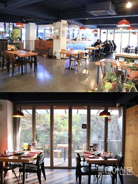 매장 안을 살펴보니 널찍한 테이블이 충분한 거리를 두고 떨어져있어 일행들과 편하게 식사를 할 수 있을 것 같더군요. 또 한쪽 창가가 유리로 돼있어 식사를 하며 경희궁 숲의 운치를 즐기기에 좋아보였습니다. 춥지 않은 날씨에는 야외 테라스 좌석에서 신선한 공기와 함께 식사를 하는 것도 좋을 듯 싶더군요.