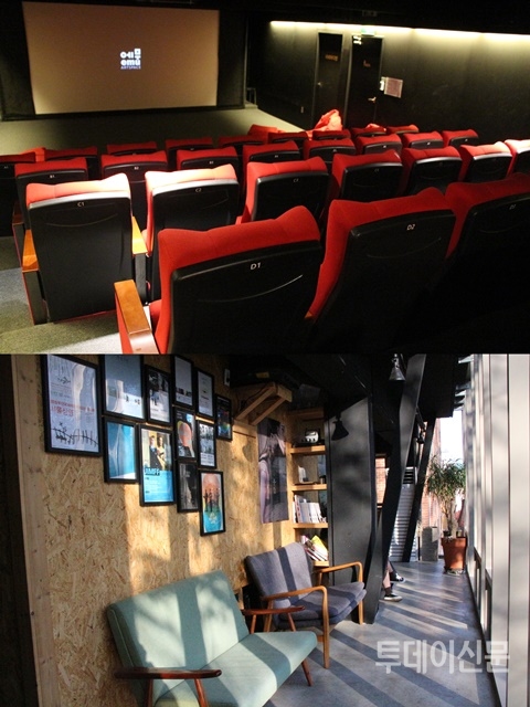 또한 영화 상영을 기다리는 관객들을 위한 공간도 마련돼 있는데요. 상영관 뒤편으로는 책을 읽을 수 있는 공간이 존재하고 있습니다. 통유리창 너머로 사계절 다른 색을 자랑하는 경희궁 나무를 감상할 수 있다는 게 이곳의 매력 포인트입니다. 덕분에 영화 상영을 대기하는 시간도 지루하지 않게 느껴질 듯 하더군요.