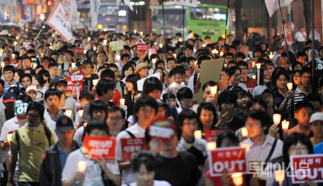 2008년 촛불집회 때 가짜사과 하는 걸 느꼈다. 바로 민간인들을 사찰하고 경찰력을 동원해 강제진압하지 않았는가. 당시 촛불집회 구속자만 60명이 넘는다. 그만큼 무리한 탄압을 했고 4대강 사업과 FTA 협상을 강요했다. 반값등록금도 자신이 공약하고는 안 했다고 거짓말하고 대학생들이 해달라니까 경찰력을 동원해 연행하고 벌금도 물렸다. 그 모든 과정에서 나라를 망가뜨리고 국민을 죽음·고통으로 내모는 게 명백했기 때문에 싸웠다. 현재 FTA 반대 집회와 광우병 집회로 대법원 유죄선고가 났지만 우리는 후회없다. 더 잘 싸워서 더 많은 전과가 있어야 하는데 아쉬울 뿐이다. 지금 이명박 시절에 벌어진 모든 악행들이 밝혀지고 있지 않나. ‘우리가 저항하고 투쟁한 게 뚜렷한 근거가 있었구나’, ‘더더욱 정당했구나’라는 게 확인되고 있다.