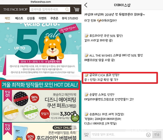 “더페(더페이스샵) 또 세일한다고 카톡 왔어요. 문구 진짜 대박이에요. 보셨어요?”