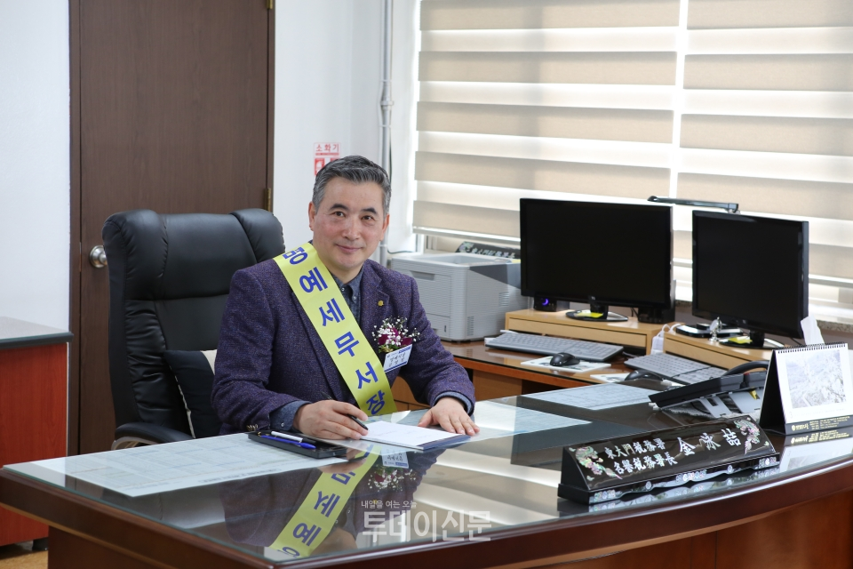 김 회장은 성실한 납세로 국가재정과 지역사회 발전에 기여한 공로를 인정받아 일일명예서장으로 취임, 세무서장의 업무를 대행했다. ‘아름다운 납세자 상’ 시상식에서 표창장을 수여하고, 각 부서에서 진행되는 업무 관련 서류를 결재하는 등 업무 전반을 살폈다.