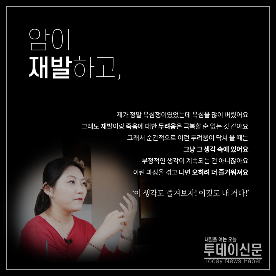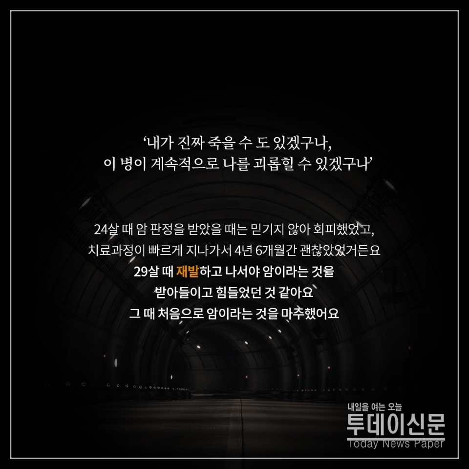 키워드 #유튜브 #암환자뽀삐 #조윤주 #난소암 #3기 #유튜버 키워드 #투데이신문 #청년 #심층취재 #인터넷신문 #심층기획 양지은 인턴기자 todaynews@ntoday.co.kr 다른기사 보기 저작권자 © 투데이신문 무단전재 및 재배포 금지 인기기사 [포토] 제4기 투데이신문 청년플러스 서포터즈 해단식 성황리에 마쳐 ‘제4기 청플 서포터즈’ 해단식 성료…박애경 대표 “청년과 동행 계속될 것” 권신영 기자 격론장 오른 새벽배송 제한, 현실화할까 강현민 기자 삼성카드 없는 삼성카드…삼성전자 새 카드 전략 어디로 김효인 기자 [칼럼] AI 시대의 부정행위: 시험, 욕망, 그리고 사회의 구조 이종우 칼럼니스트 GS건설 허윤홍 체제 2년, 단독 경영 기로에 서다 심희수 기자 최신기사 카카오헬스케어 품은 차바이오텍…차원태, 두 달 만에 첫 존재감 캠코, 동반성장 유공 ‘중소벤처기업부 장관 표창’ 수상 문영서 기자 11월 기업경기, 반도체가 견인…13개월 래 최고 문영서 기자 삼성바이오로직스, 규제기관 제조 승인 400건 달성 강현민 기자 LG생활건강, 사과나무의료재단과 ‘구강 마이크로바이옴’ 연구 협력 강현민 기자 [인사] 삼성화재 투데이신문 개의 댓글 회원로그인 댓글 내용입력 댓글 정렬 최신순 추천순 답글순 BEST댓글 BEST 댓글 답글과 추천수를 합산하여 자동으로 노출됩니다. 닫기 더보기 댓글삭제 삭제한 댓글은 다시 복구할 수 없습니다. 그래도 삭제하시겠습니까? 비밀번호 닫기 댓글수정 댓글 수정은 작성 후 1분내에만 가능합니다. 본문 / 400 비밀번호 닫기 내 댓글 모음 닫기