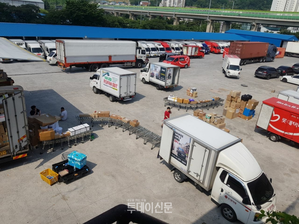 그러나 여천터미널도 사정은 마찬가지였다는 주장이다. 택배기사들은 일할 공간이 부족해 터미널 주차공간으로 쓰이던 공터에서 분류와 하차작업을 했다. 작업은 그늘이 없는 맨땅에서 수동레일로 진행됐다.