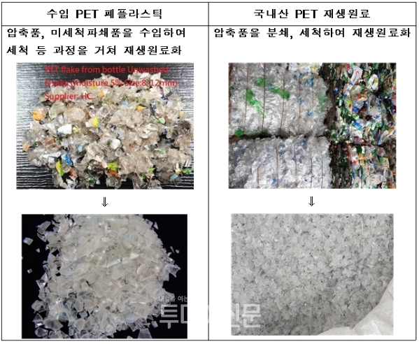다만 오염되지 않은 플레이크와 펠릿 등 폐기물 수입신고 대상이 아닌 재생원료의 경우 수입제한 대상 품목에서 제외된다. 아울러 기존에 수입허가·신고가 수리된 건에 대해서는 종전처럼 수입이 가능하다.