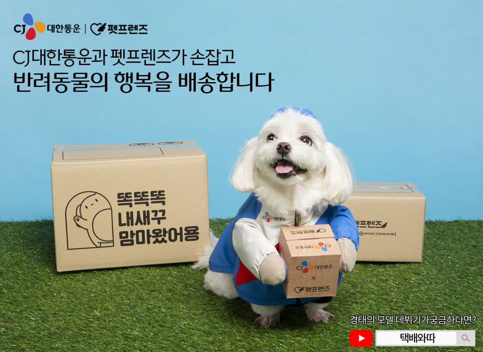 【투데이신문 김효인 기자】 CJ대한통운이 펫프렌즈와 손잡고 화제견 ‘경태’를 모델로 한 반려동물 행복 배송 서비스에 나선다.