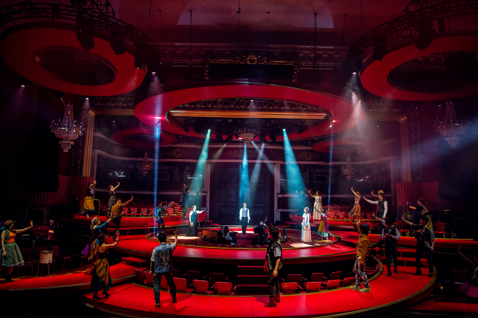 작품을 또 한 번 특별하게 만든 무대 디자인에도 주목해 볼 만 하다. 강렬한 붉은색으로 꾸며진 무대는 내면에 잠재한 시대의 낭만을 그렸다. 또 곳곳에 밝혀진 샹들리에가 화려하면서도 흥겨운 분위기를 고조시켰다. 마치 파티장처럼 꾸며진 무대구성은 뮤지컬 ‘그레이트 코멧’을 더욱 돋보이게 하는 핵심 요소다. 잘 보면 비스듬하게 기울어진 원형의 무대가 마치 각각 회전운동을 하는 하나의 행성과도 닮은 느낌이 든다. 배우들은 이 무대를 이곳저곳으로 옮겨 다니며 각자 준비한 이야기를 풀어가고, 때때로 객석 통로로 달려와 단숨에 몰입감을 높인다.