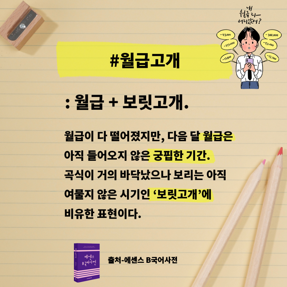 월급이 다 떨어졌지만, 다음 달 월급은 아직 들어오지 않은 궁핍한 기간.