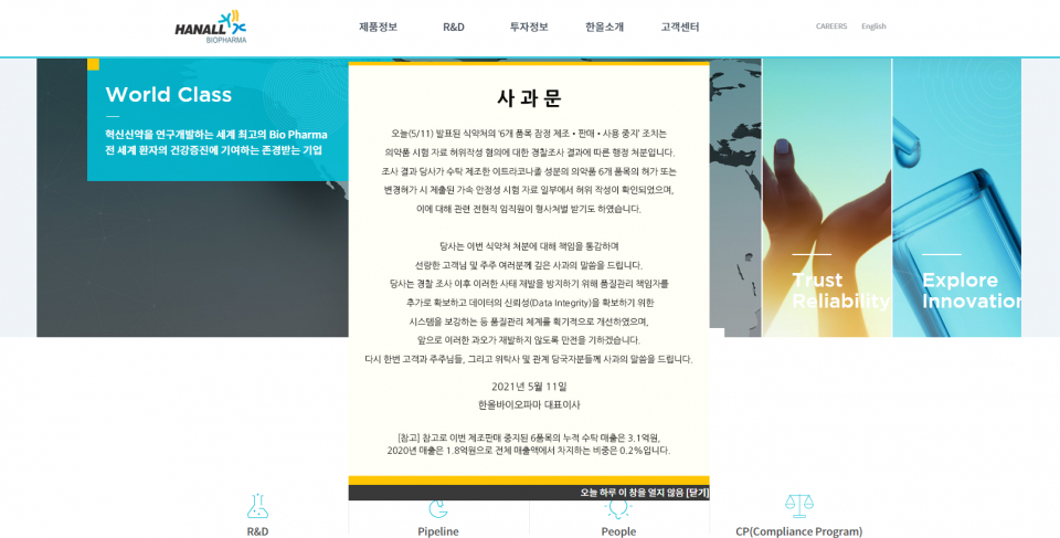이와 관련 한올바이오파마는 같은 날 사과문을 내고 입장을 밝히는 한편 재발 방지를 약속했다.