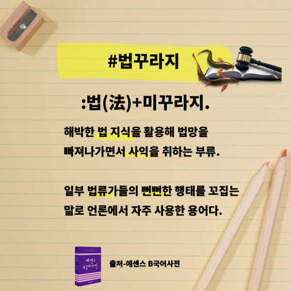 해박한 법 지식을 활용해 법망을 요리조리 빠져나가면서 사익을 취하는 부류를 일컫는말.