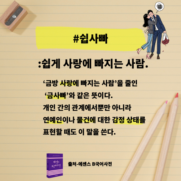 금방 사랑에 빠지는 사람을 줄인 금사빠와 같은 뜻이다.