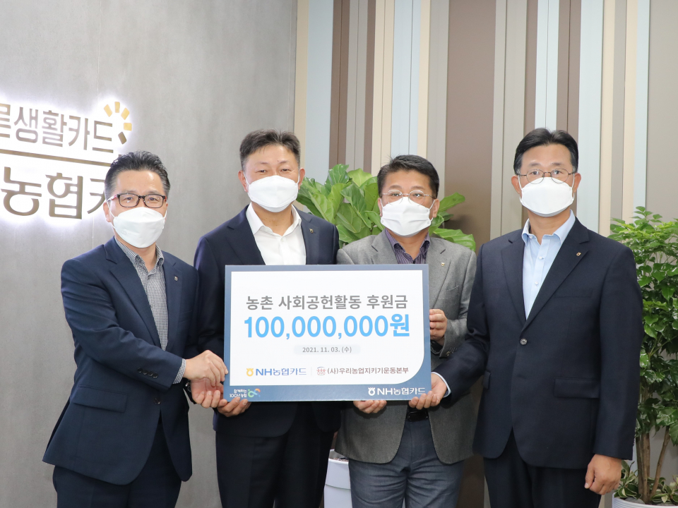 공익기금 1억원은 ‘NEW농촌사랑 체크카드’, ‘농촌사랑클럽 체크카드’, ‘NH농부의마음 체크카드’ 이용액의 일정 비율을 자체 적립해 조성됐다.