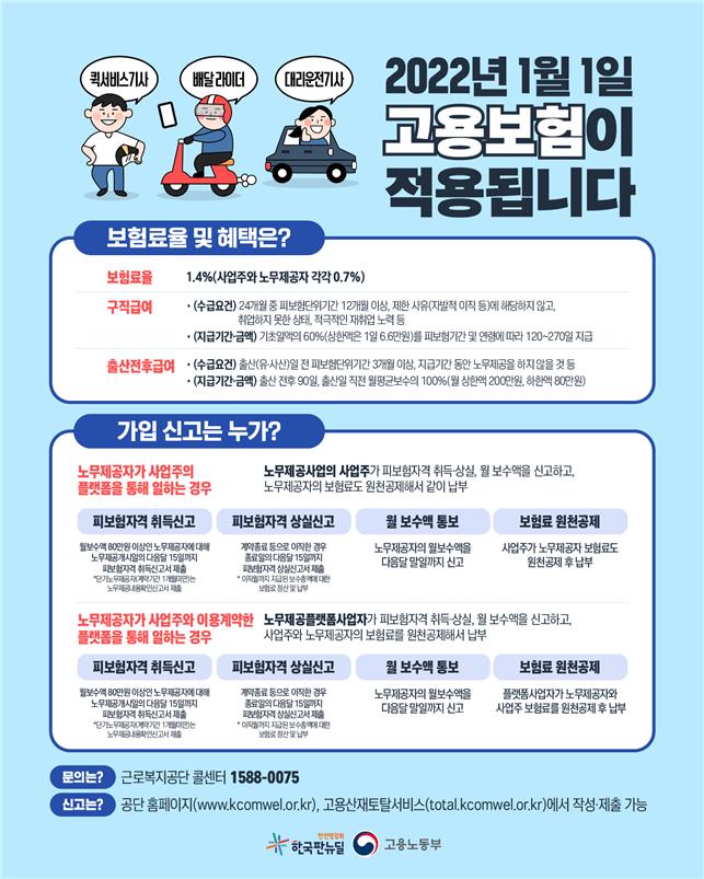 아울러 고용부와 근로복지공단은 내년 1월부터 3개월간 플랫폼종사자 고용보험 피보험자격 집중 신고 기간을 운영하고, 이 기간 피보험자격 신고 지연 등에 따른 과태료에 대해선 면제할 방침이다.