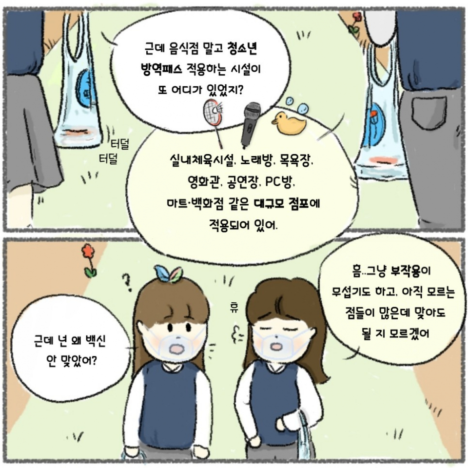 그러면서 두 여학생은 “백신 맞고 다음엔 꼭 같이 떡볶이 먹는 거다”라고 약속하며 대화를 끝맺는다.