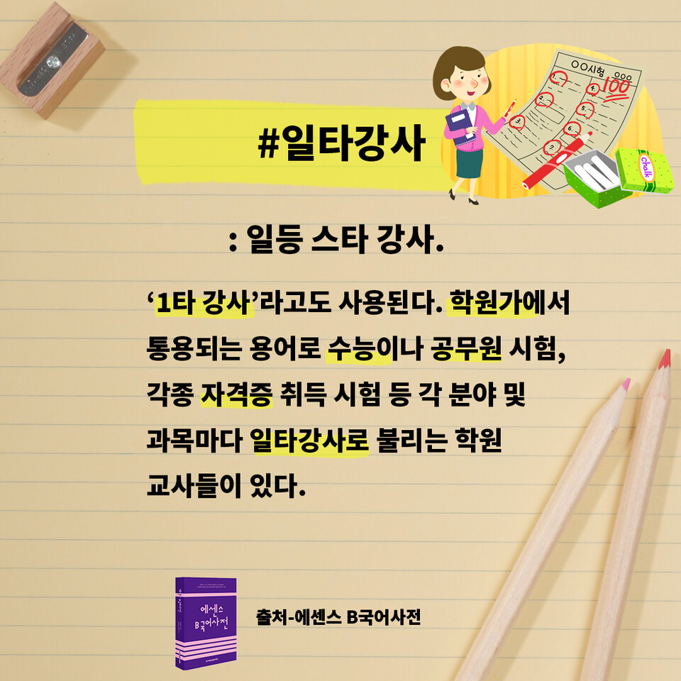 1타 강사라고도 사용된다. 학원가에서 통용되는 용어로