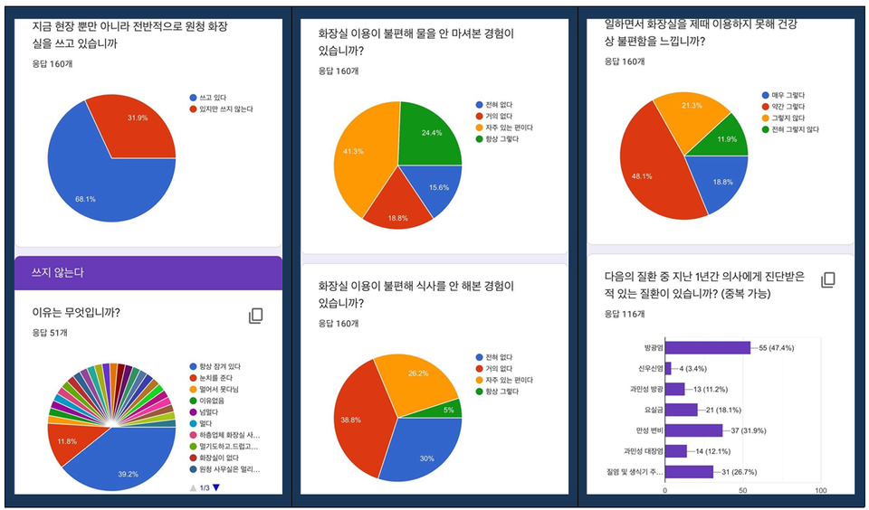 설문결과, 여성 노동자 화장실 이용 불편 겪어