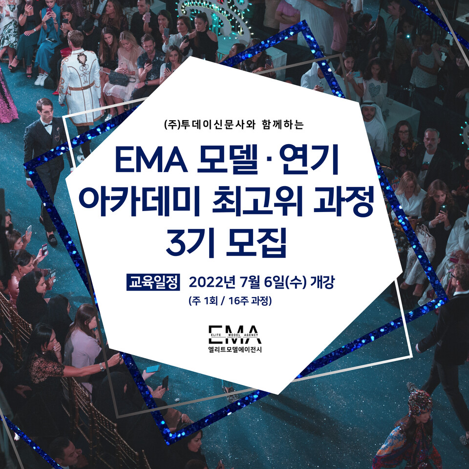 【투데이신문 박나래 기자】 ㈜투데이신문사가 엘리트모델에이전시와 함께 EMA 모델연기 아카데미 최고위 과정 3기 수강생을 모집한다.
