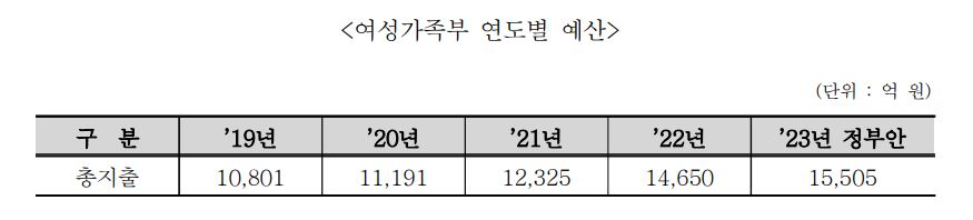 여성가족부는 31일 이 같은 내용이 담긴 2023년도 여성가족부 예산안을 발표했다.